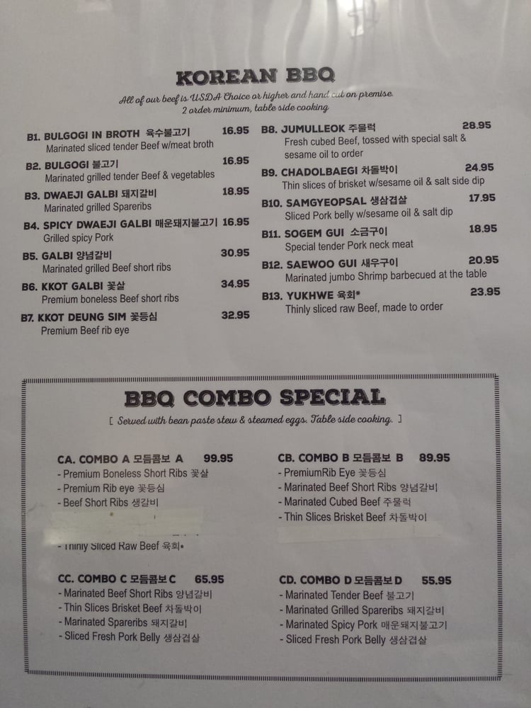 Rice Dishes: Treat yourself to the Spicy Kimchi Fried Rice or indulge in the marinated Beef Bulgogi Fried Rice, both priced at $13.95. For a heartier option, the Bulgogi Rice Bowl, loaded with tender beef and veggies, awaits at $15.95.